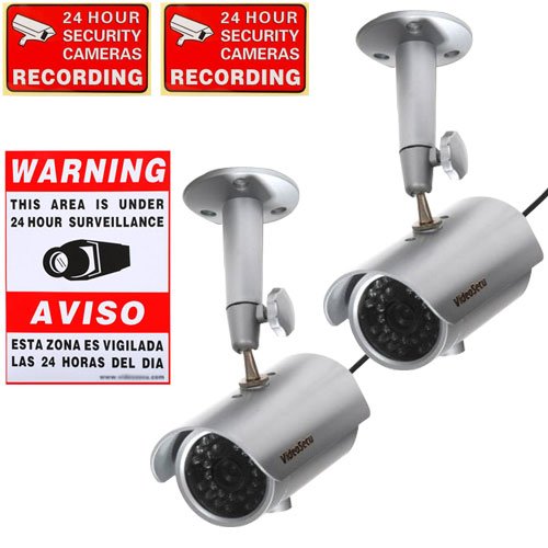 VideoSecu 2 Pack Outdoor Indoor Imitation Security Camera Fake IR Style LED Lens Dummy CCTV Camera with free Warning Decal 1RH Review