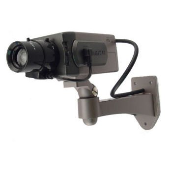 Now you can deter robbery, theft, vandalism, etc. without the high cost of a real security camera. With the DCZOOM Dummy Camera with Zoom Lens, even the most sophisticated criminals will think the premises are guarded by a high-tech surveillance system and go in search of an easier target. Our dummy cameras look real because they are real- real shells that is. They are actual surveillance camera shells that lack the expensive electronics inside while still providing the deterrent of a security camera at a fraction of the cost! This camera features a flashing red LED light and 'zoom' lens. It has a fully adjustable mounting bracket that will let you adjust the camera direction. The camera requires 2 AA batteries that are not included. Dimensions of the camera (not including the mounting bracket) are 6-1/4 inches x 2-3/8 inches x 2 inches. The DCZOOM can be installed quickly and easily using the included mounting screws.