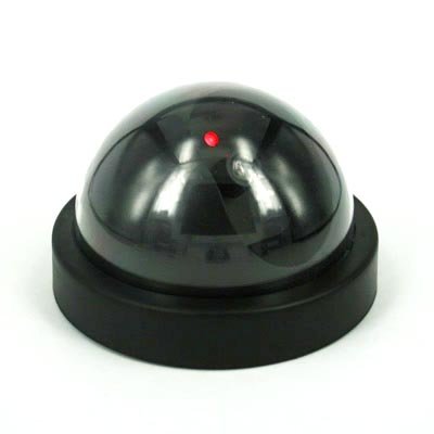 Now you can deter robbery, theft, and vandalism without the high cost of a real outdoor security camera. When placed outside your home or business, even the most sophisticated criminals will think the premises is guarded by a high-tech surveillance system and go in search of an easier target. Also recommended for security in parking lots. This is an actual surveillance camera in outdoor housing that has been modified into a "dummy" or fake security camera. This dome dummy camera is designed to imitate the small, high tech security cameras on the market today. Installs quickly and easily to the ceiling or wall using the included screws. The base measures 4 1/2" across and the dome is 2 3/4" high. Requires 2 "AA" batteries.