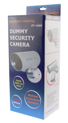 Now you can deter robbery, theft, and vandalism without the high cost of a real outdoor security camera. When placed outside your home or business, even the most sophisticated criminals will think the premises is guarded by a high-tech surveillance system and go in search of an easier target. In fact, this is an actual surveillance camera in outdoor housing that has been modified into a "dummy" or fake security camera. When this camera detects motion it will pan back and forth for 25 seconds and a red activation light will flash. This camera requires no wiring and is easily installed with the included mounting hardware. The camera is powered by two AA batteries that are not included. A CCTV window sticker is included. Dimensions of the item are nine and three-quarter inches by five and one-quarter inch by five and one-eigth inch.